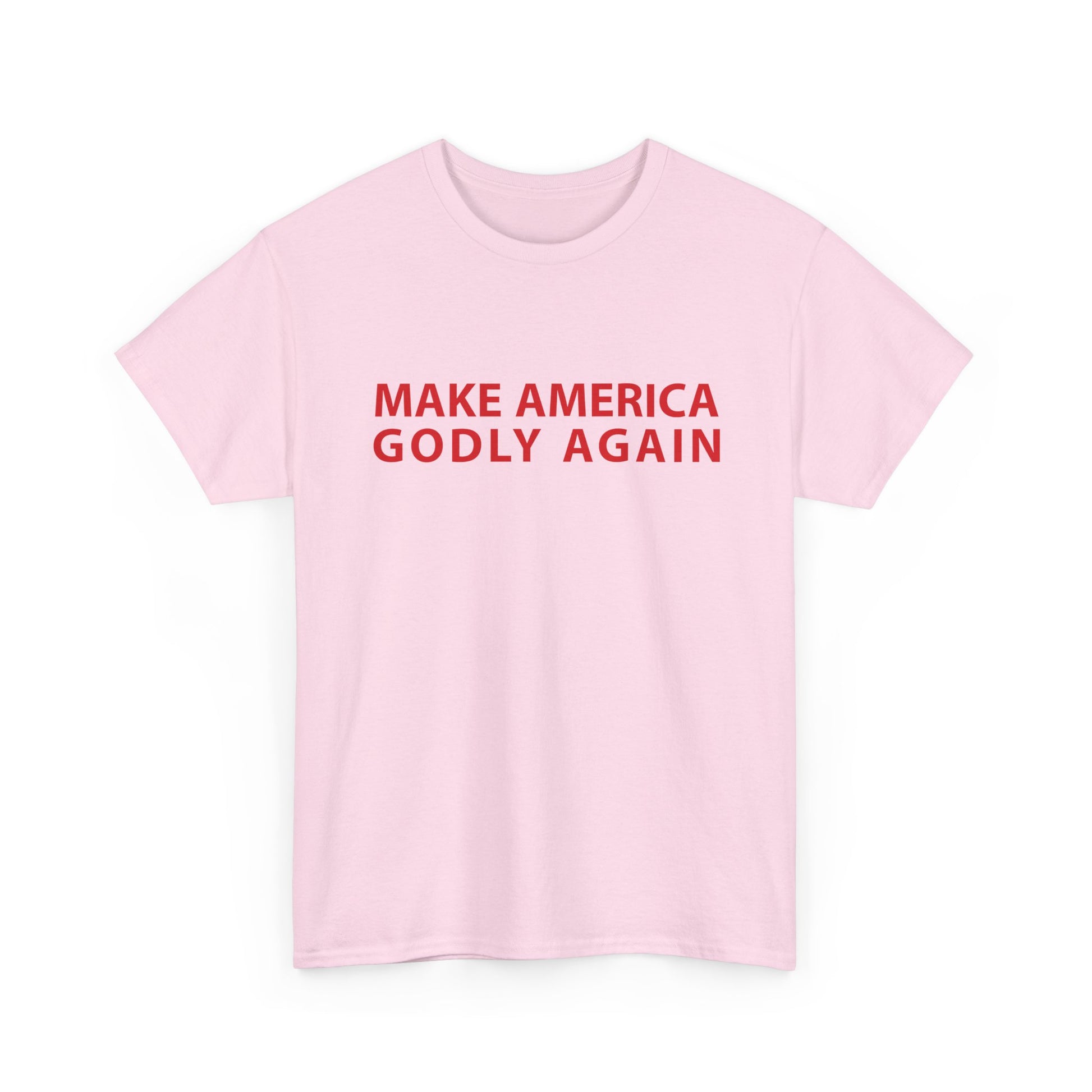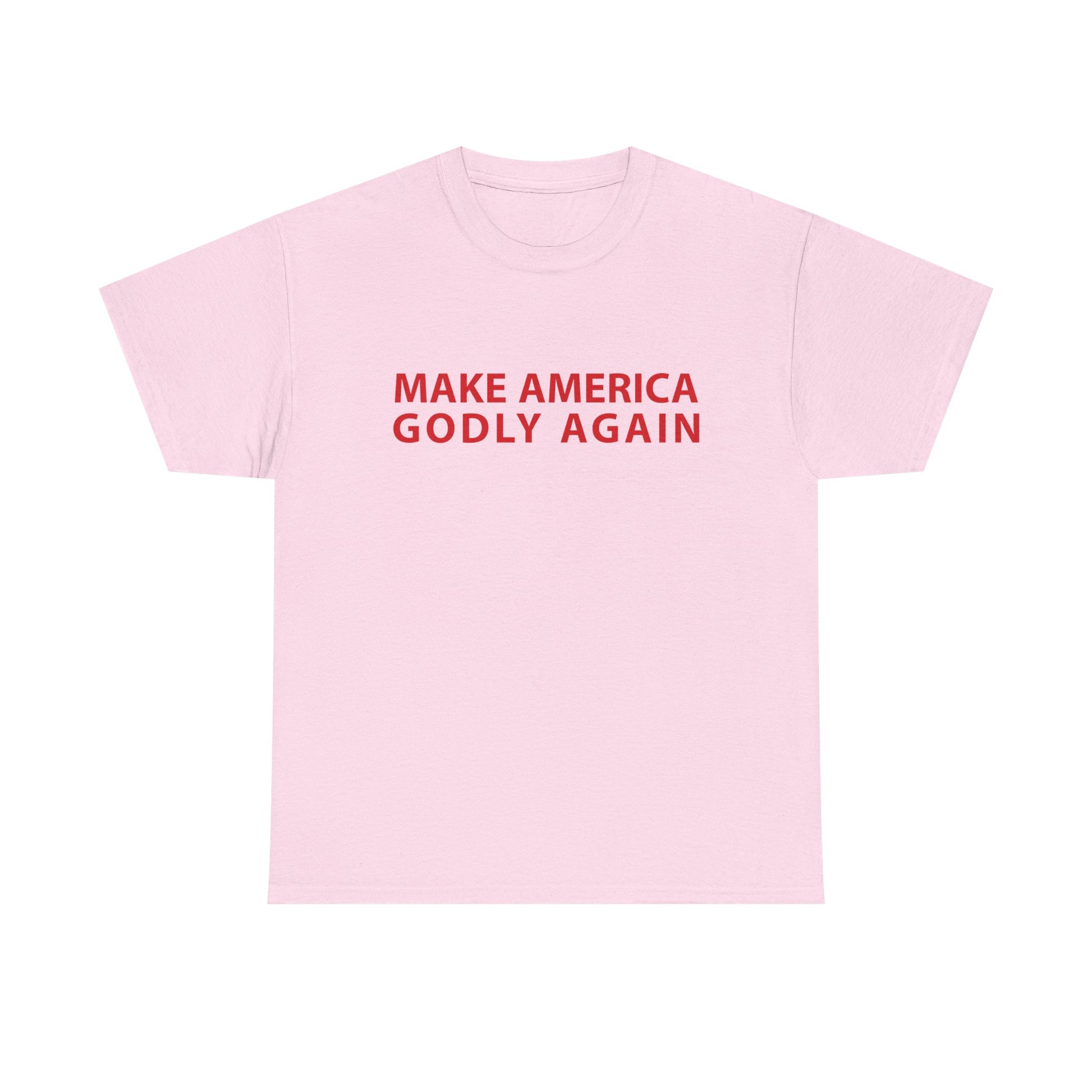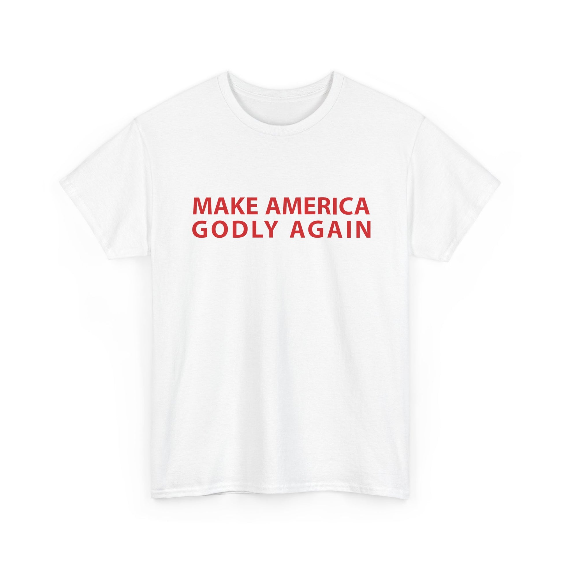 Spread a message of hope and faith with this Make America Godly Again T-Shirt. Perfect for those who believe in serving others and praying for a better world. This tee exudes a sense of patriotism and devotion, fitting for religious holidays, patriotic celebrations, and everyday wear for adults.